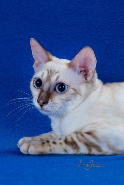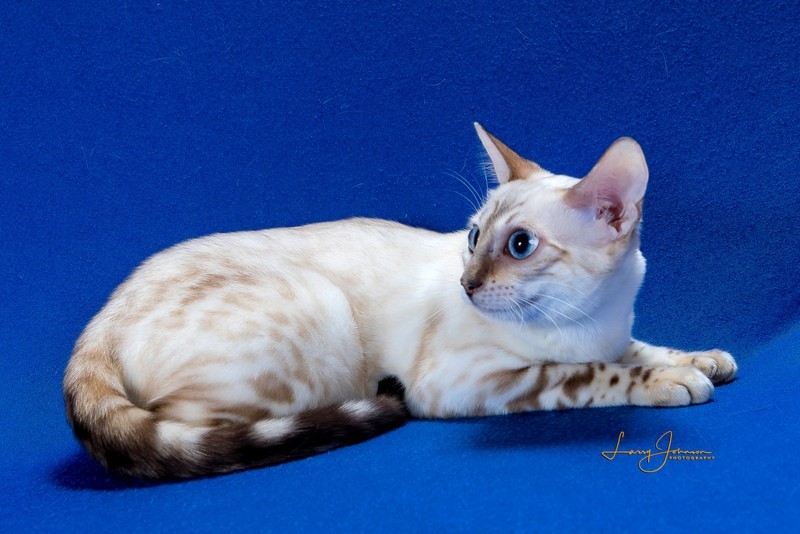 Keela never sold, so I took her to some shows to socialize her more. She did so well that I decided to keep her. Keela has 2 babies available with Pavo. See them on the kittens page.