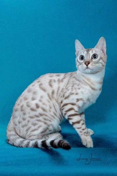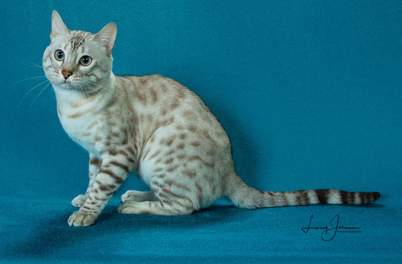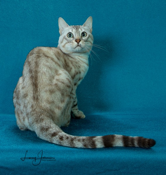 I saw blue at a show and found out that the owner/breeder was selling him. He is a silver mink, so he has the colors that I need in a male. I decided to get him. He has been doing very well at shows. Blue has babies available with Lia. See them on the kittens page.