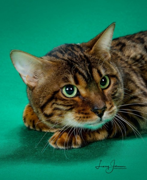 I have never had his pictures taken. We had to cancel our annual photo shoot with Larry last December, so it will probably be this December. I will try to get a casual shot of him just sitting around the house. Corvee has babies available with Adara. See them soon on the kittens page.