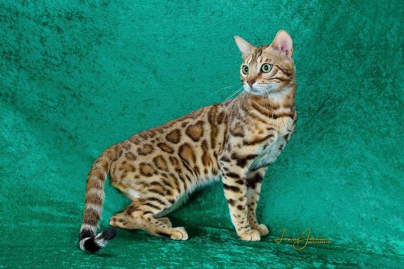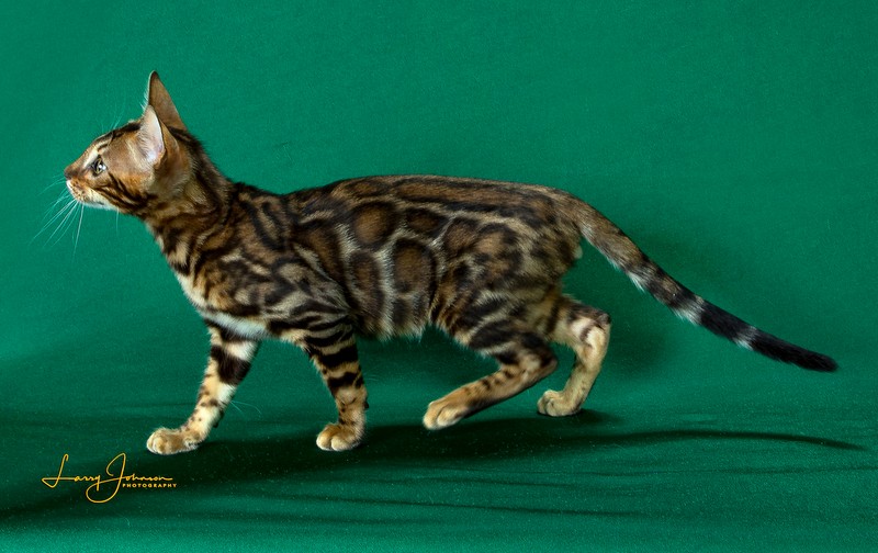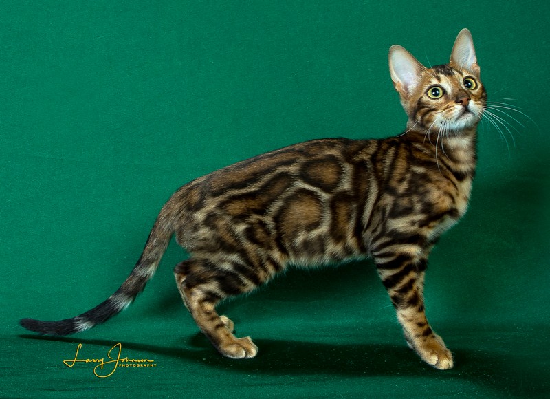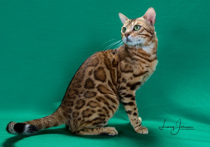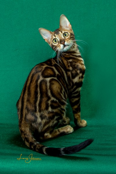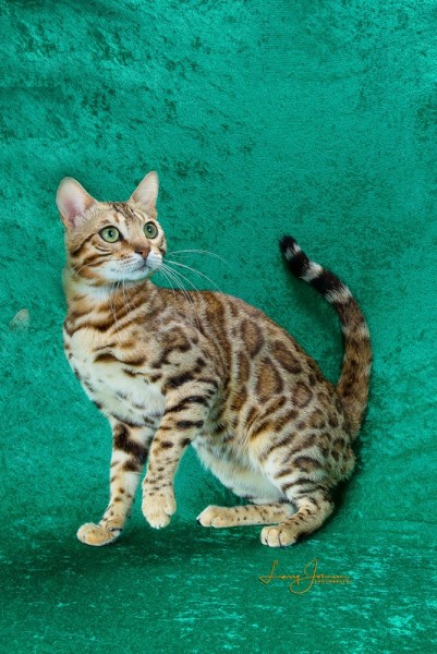 Pavo got his name because it is a star constellation meaning the peacock. Peacocks are pretty, and so is he. Since I had girls with the boys all summer and no one was bred, I brought Pavo in on New Years Eve and let him run the house for a week. He produced litters with Aquila, Alya, Maia, Houdini, Nikki, Koana, and Ellee. See them on the kittens page.